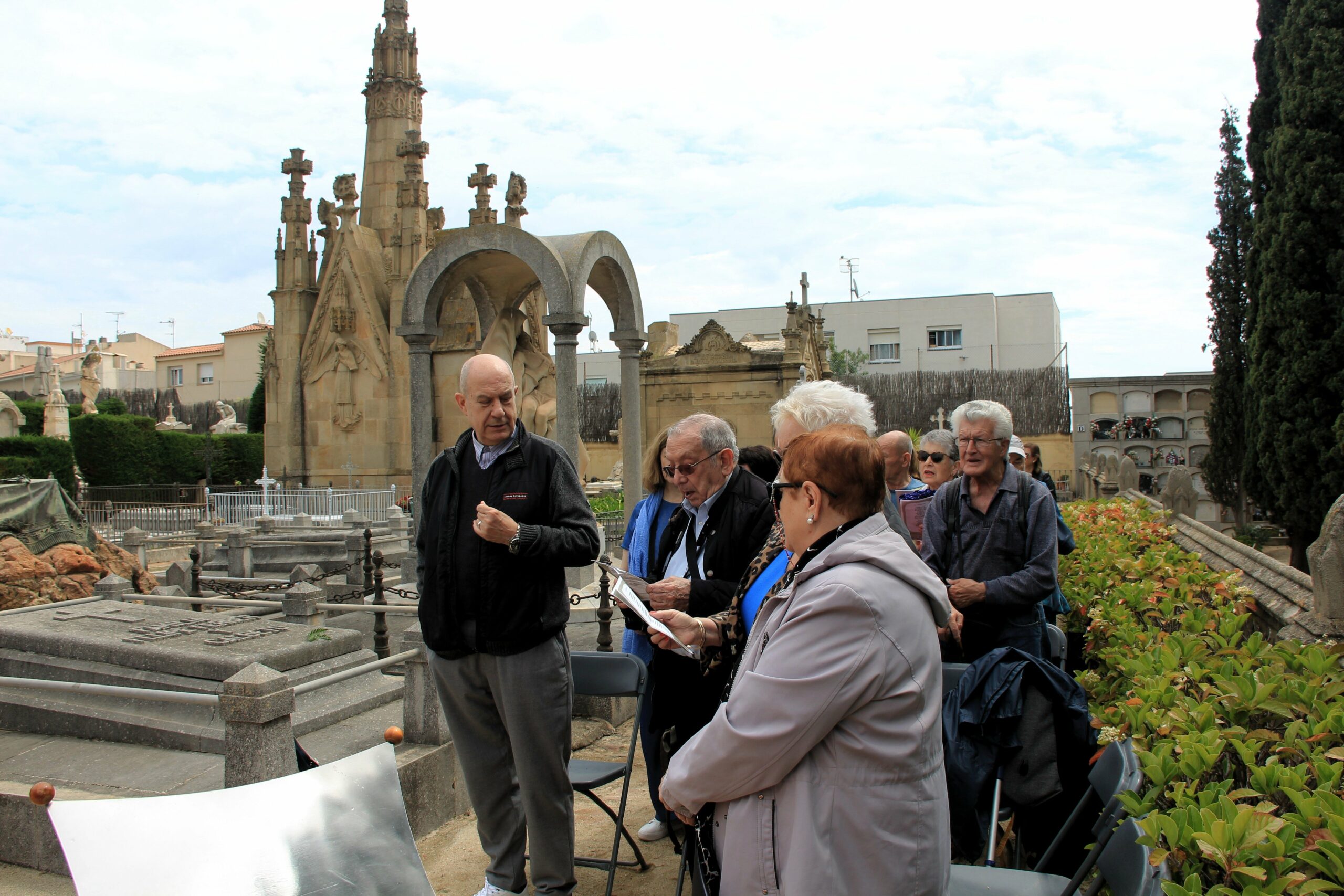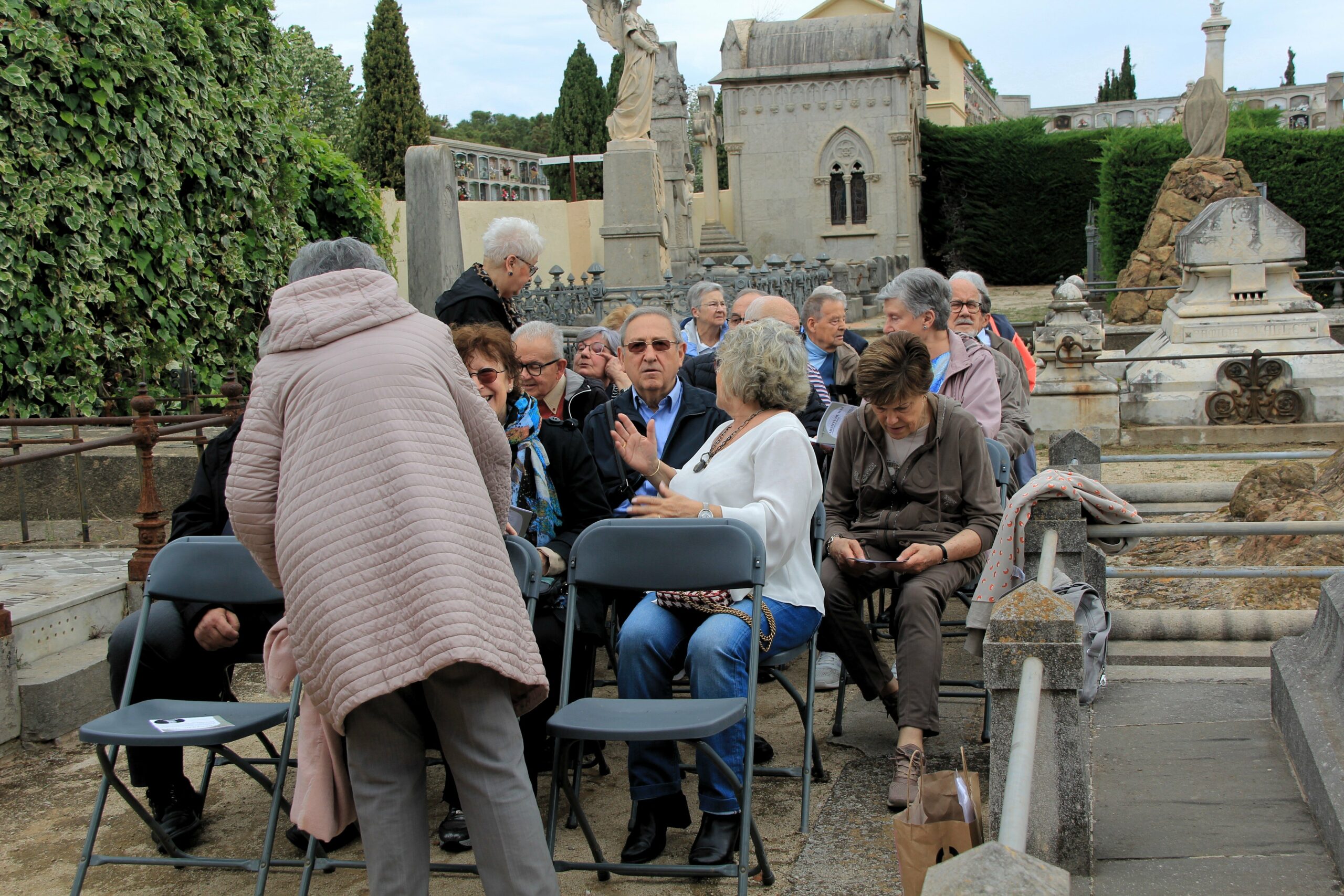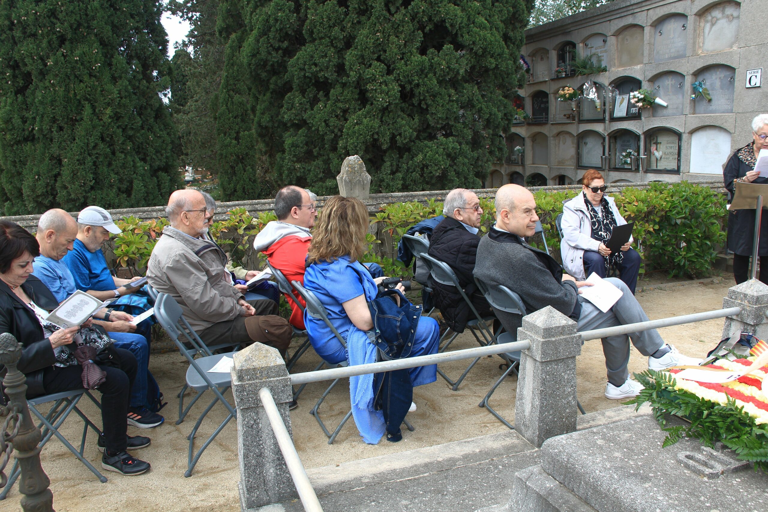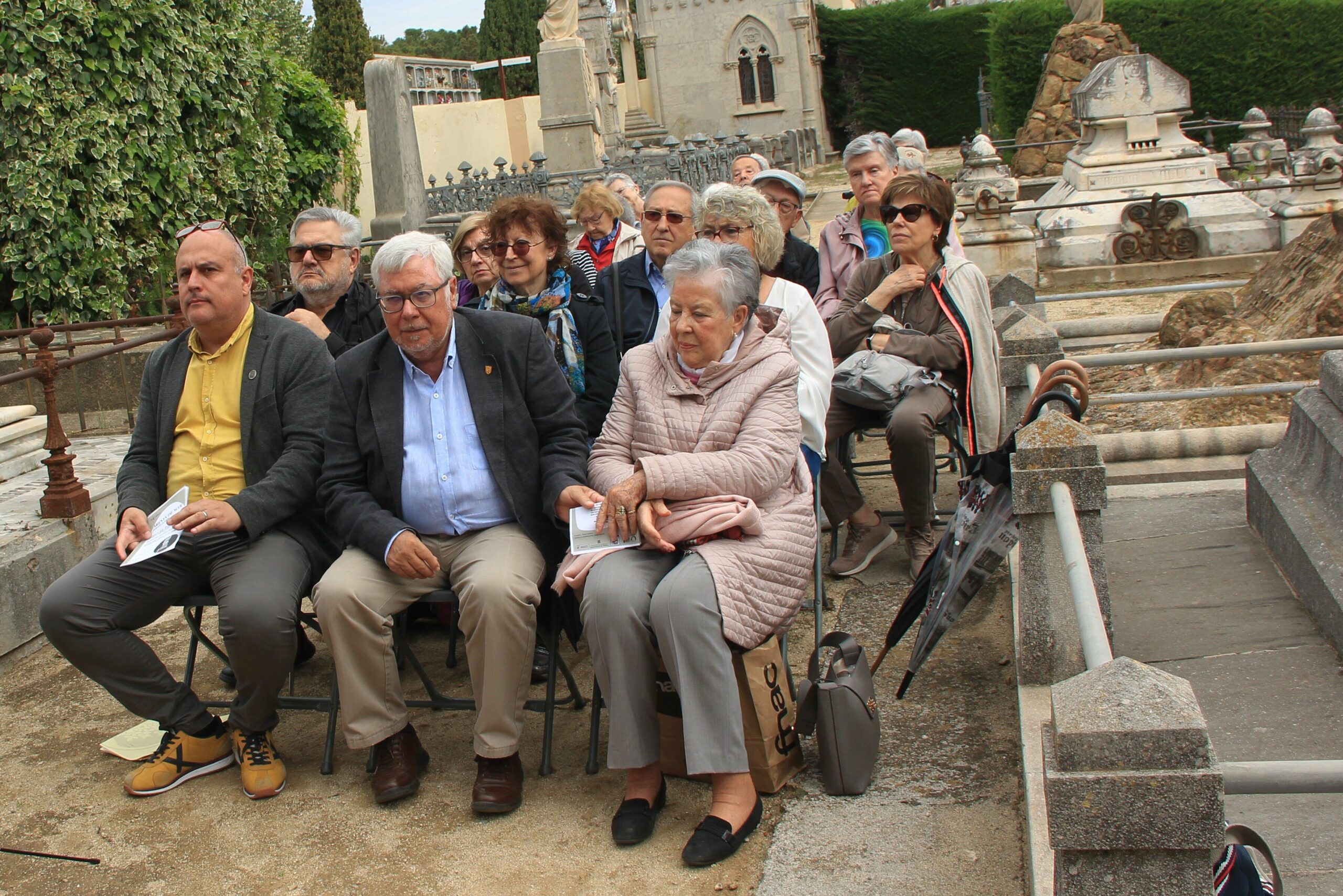 La sortida de l’autocar a les 10 del matí al lloc habitual, Balmes/ Gran Via. Ens vam dirigir cap al cementiri d’Arenys de Mar, on ens esperava la Sra. Montserrat Caba, directora del Centre de Recerca Salvador Espriu, que en tot moment ens ha facilitat l’organització de l’acte.