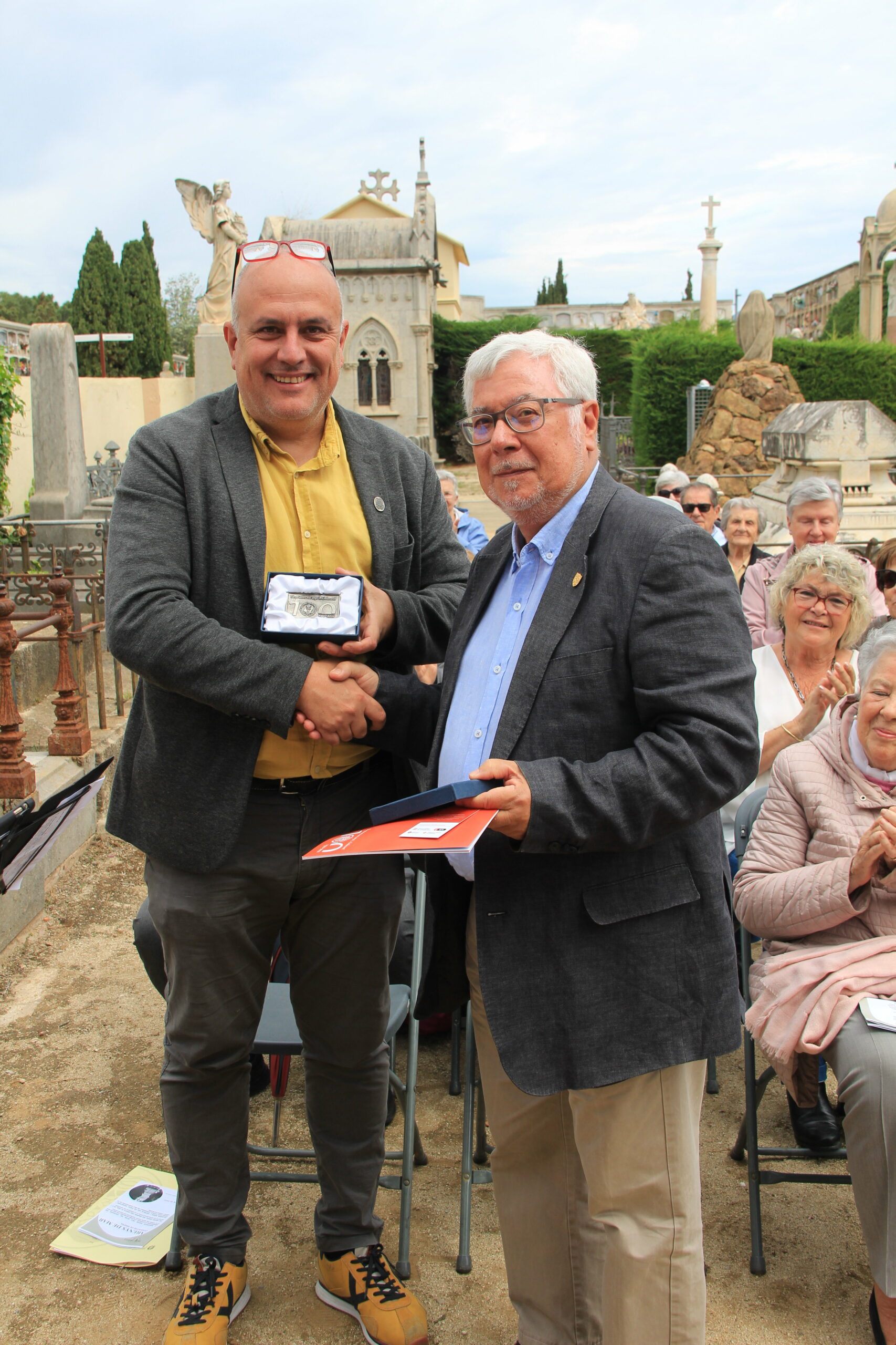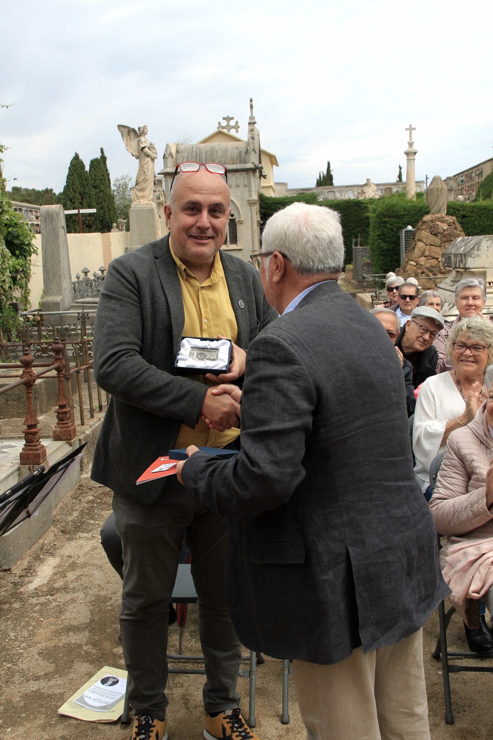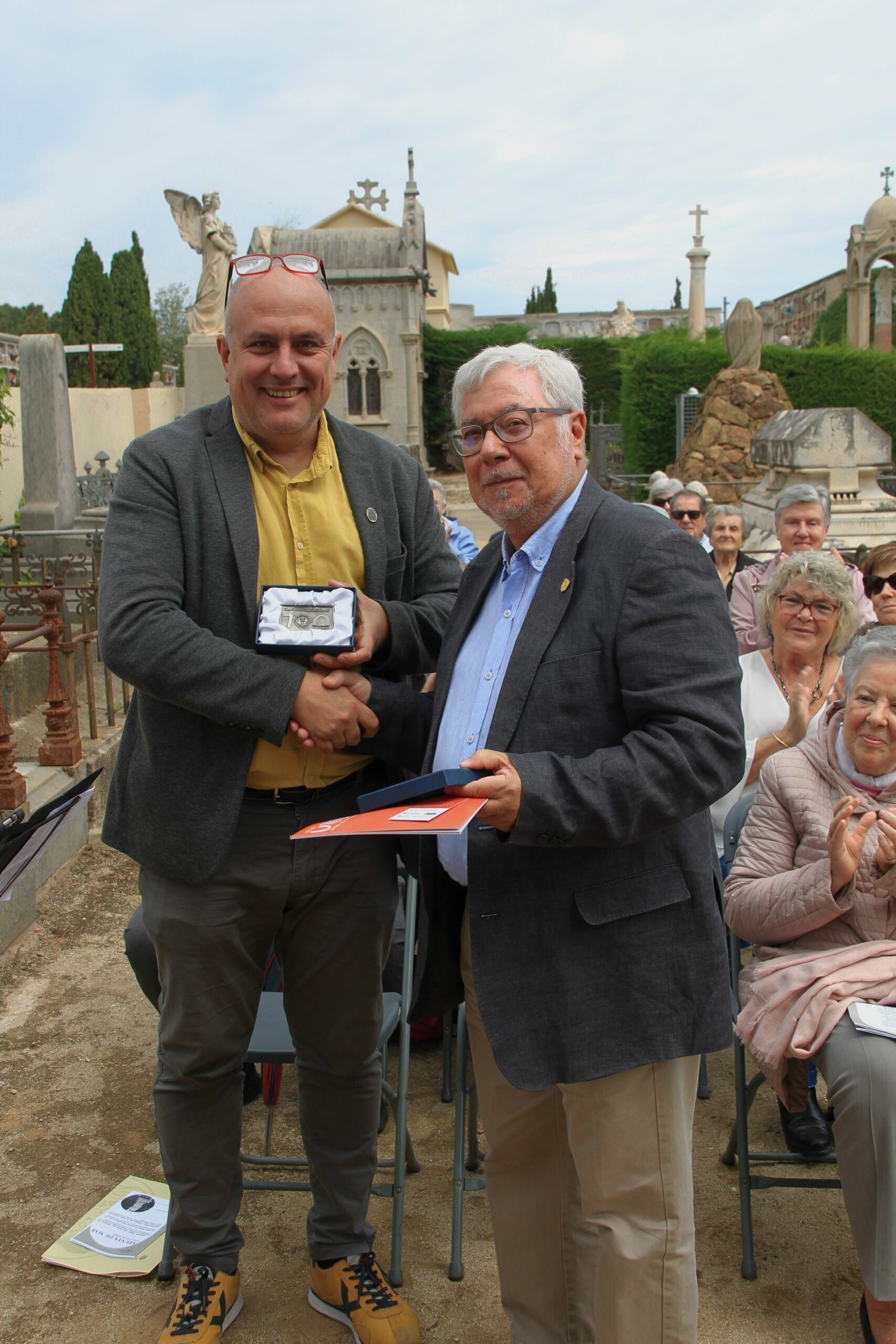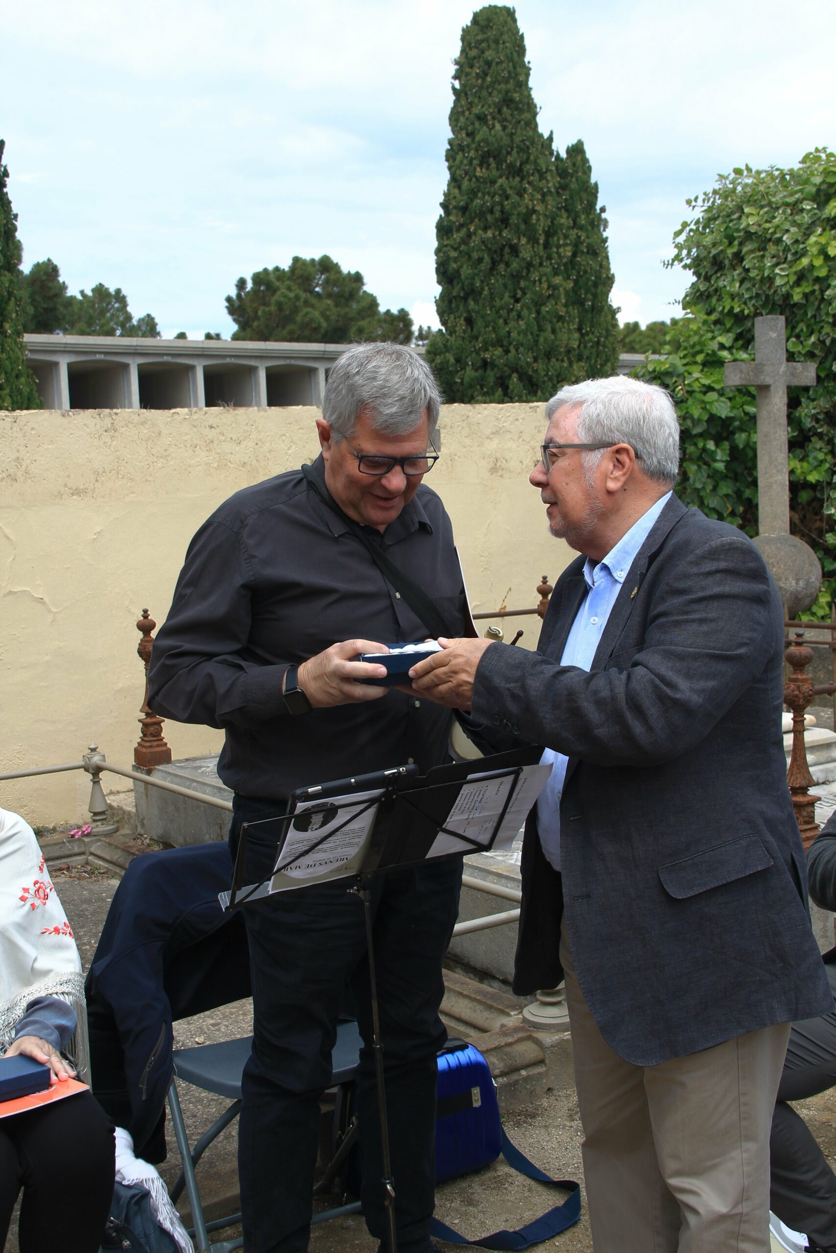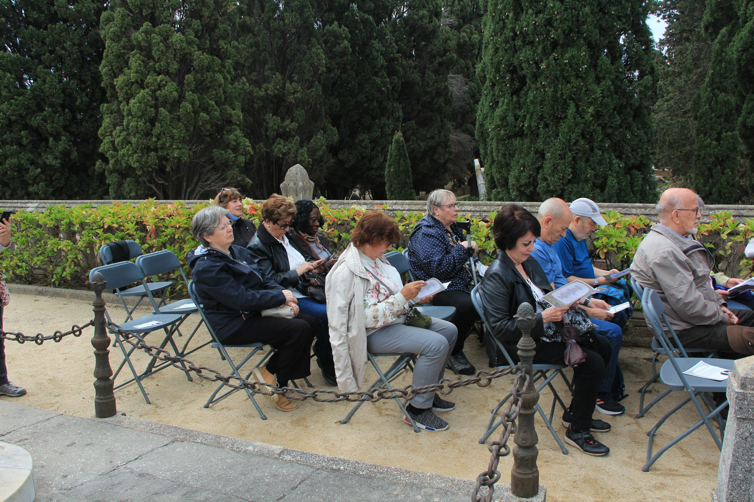 La sortida de l’autocar a les 10 del matí al lloc habitual, Balmes/ Gran Via. Ens vam dirigir cap al cementiri d’Arenys de Mar, on ens esperava la Sra. Montserrat Caba, directora del Centre de Recerca Salvador Espriu, que en tot moment ens ha facilitat l’organització de l’acte.