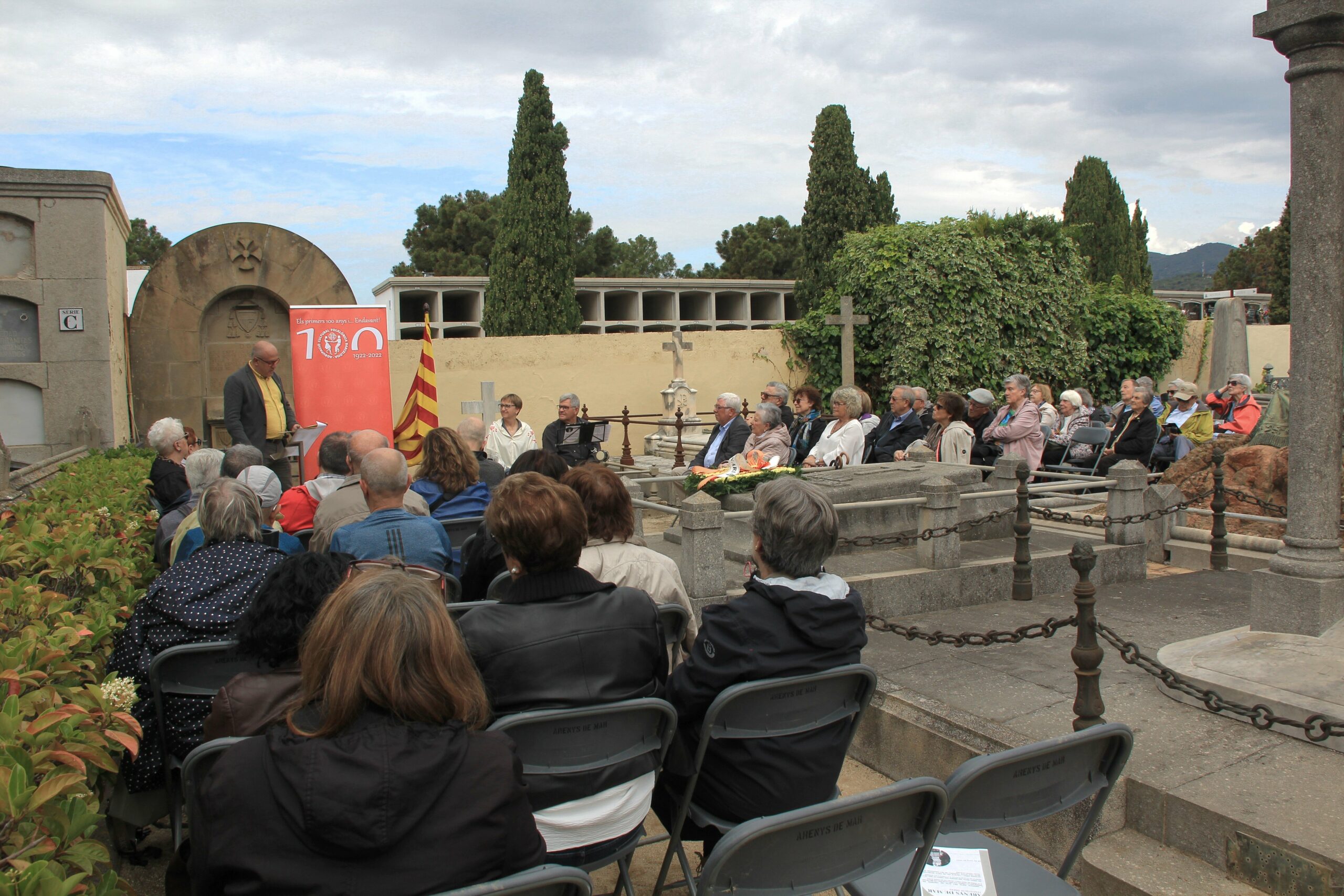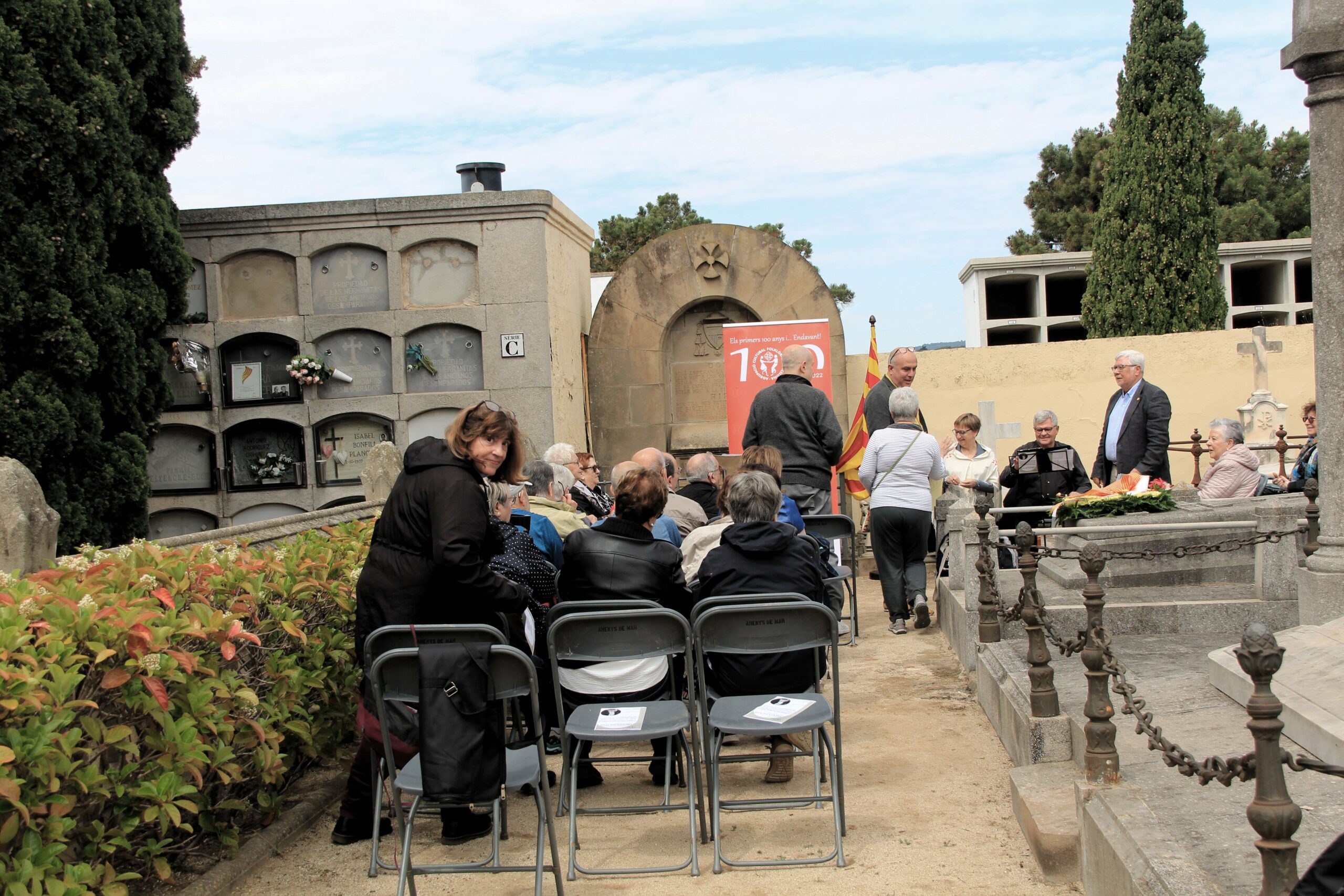 Dissabte 20 de maig de 2023, la secció de turisme de l’Agrupació Cultural Folklòrica Barcelona va organitzar dintre dels actes del Centenari un reconeixement a la llengua i cultura catalana. Ens arribàrem fins a Arenys de Mar per retre l’esmentat homenatge a la tomba del gran poeta i escriptor Salvador Espriu