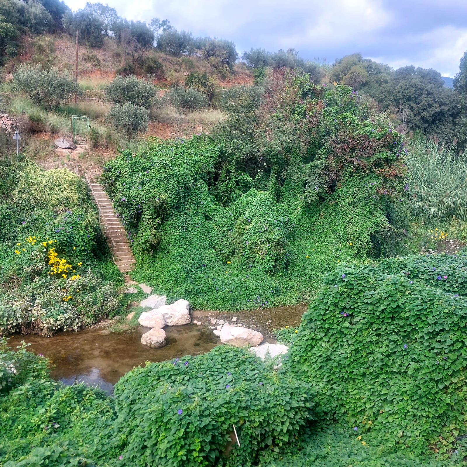 Després vam fer una excursió d’uns 7 km pels voltants de Caldes. El paisatge combina suaus turons, camins envoltats de pins, alzines i camps de conreu, amb bones vistes. El contrast entre la natura i les aigües termals que han donat fama al poble fa que la zona tingui un encant especial i una gran tranquil·litat En acabar la caminada, el grup de muntanya ens va convidar a fer un vermutet, que vam compartir amb molt bon humor.